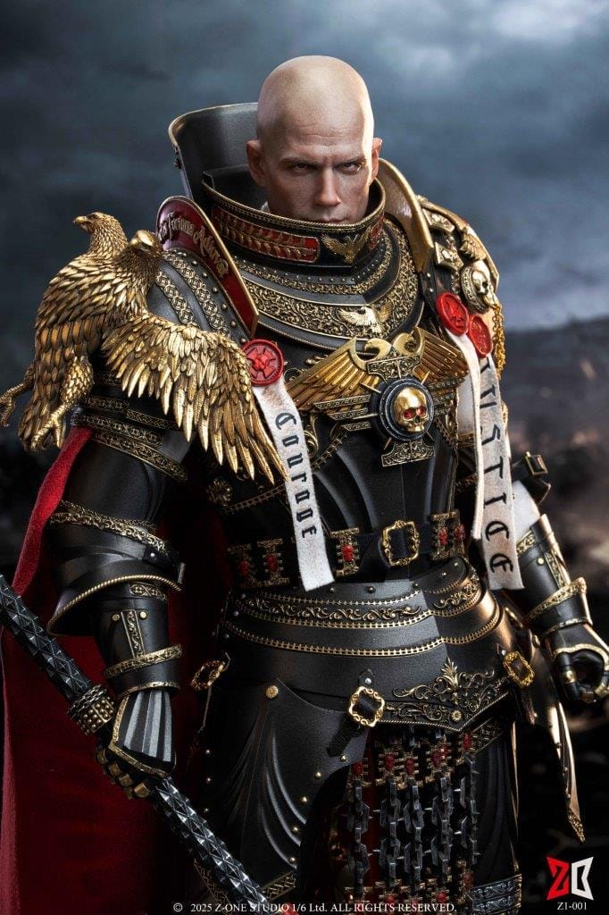 The armor itself tells a story: the double-headed eagle on the pauldrons gazes upon the material world and the realm beyond; the magnetic eagle emblem on the chest can ignite a cold fire in the darkness, a faint glow from the heart furnace of the first Lord Inquisitor. The alloy plates are forged by a lost art, and the thousand copper nails at the joints are inscribed like scriptures with the creed: “Sacrifice is Purification.”