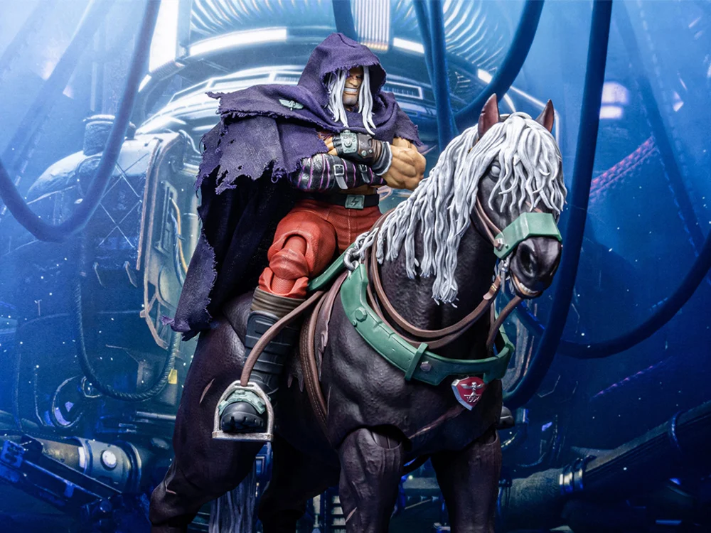 A man who resembles M. Bison, the leader of Shadaloo, who was believed to be dead. He has lost his memories, but has violent tendencies. He appears in locations related to Shadaloo, guided by Psycho Power with his trusty companion Rocinante. Don’t miss your chance to add this figure set to your Street Fighter collection!